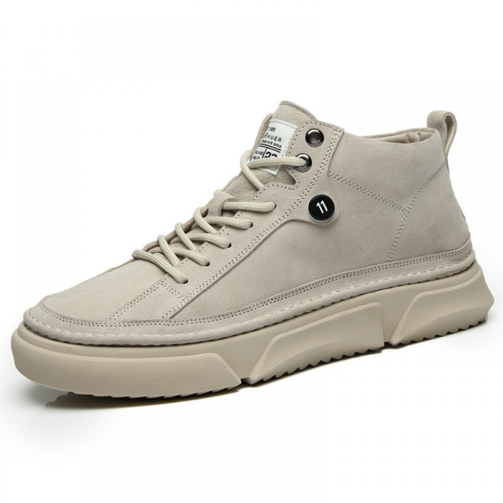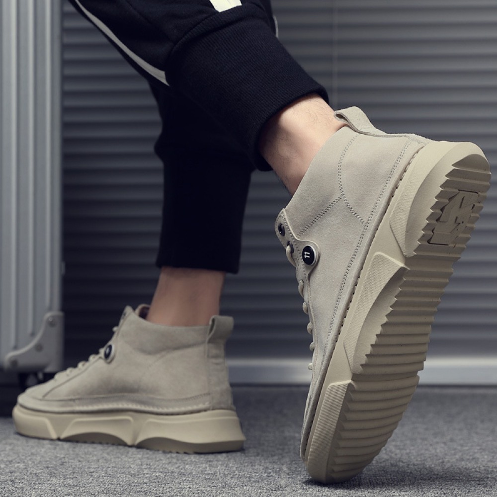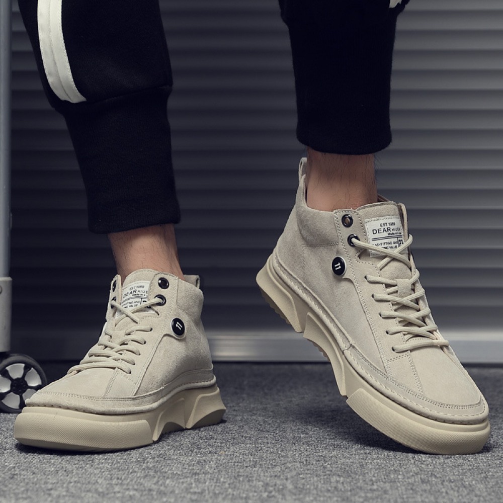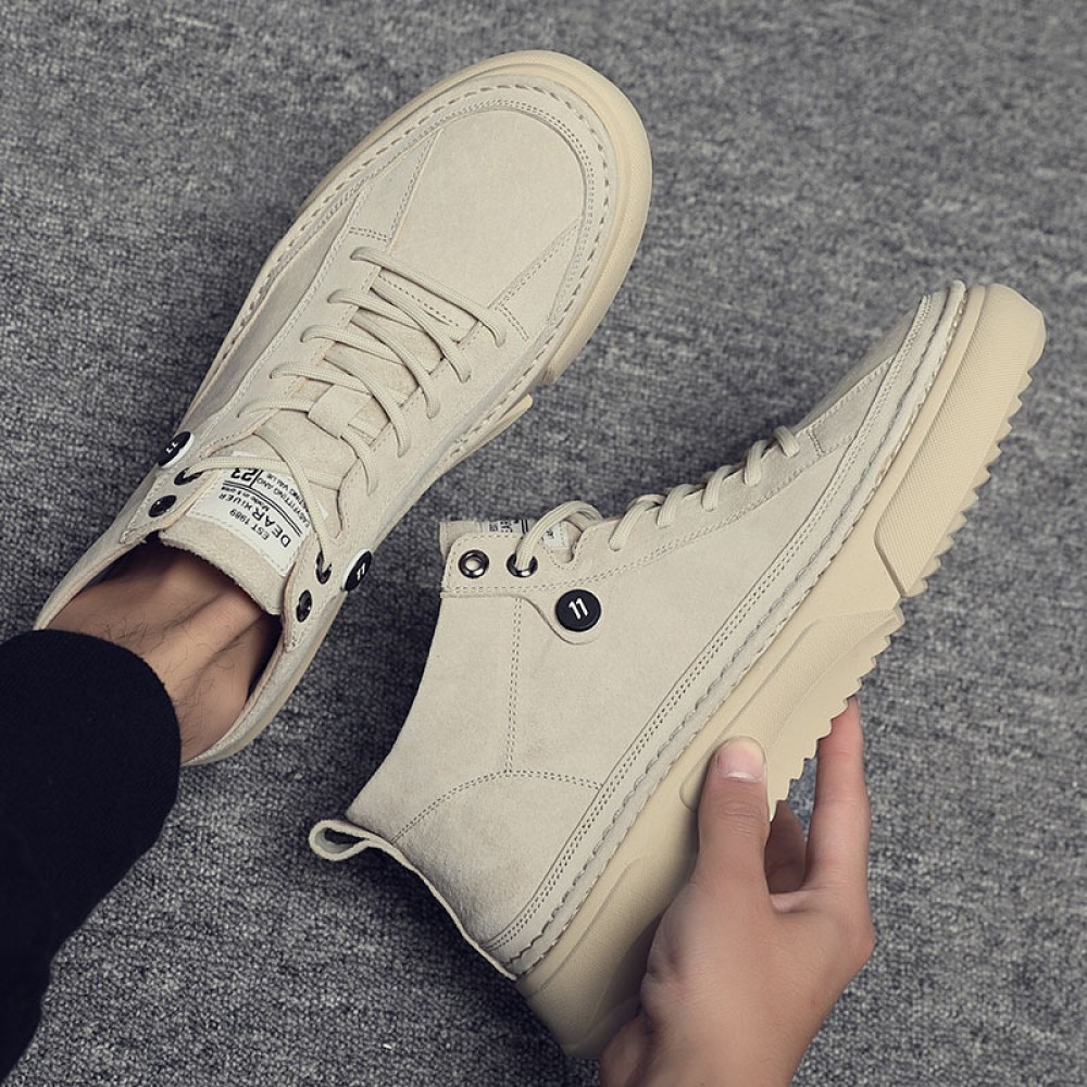 Autumn Men's Shoes New High-Top Leather Sneakers Men's Casual Martin Boots Trendy White Shoes