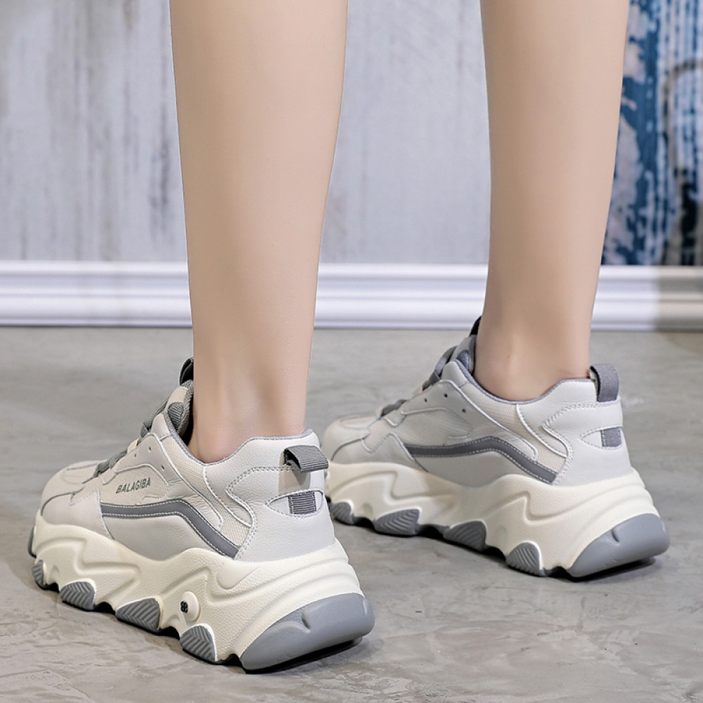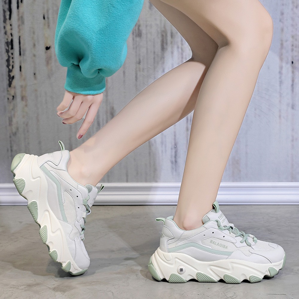 Spring New Student Sports Shoes Women's Running Thick-Soled Height Increase Shoes Women