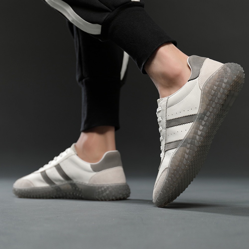 Trendy Shoes Explosive Style Transparent Sole Casual Shoes Breathable Flying Woven Tongue Men's Sports Shoes Genuine Leather