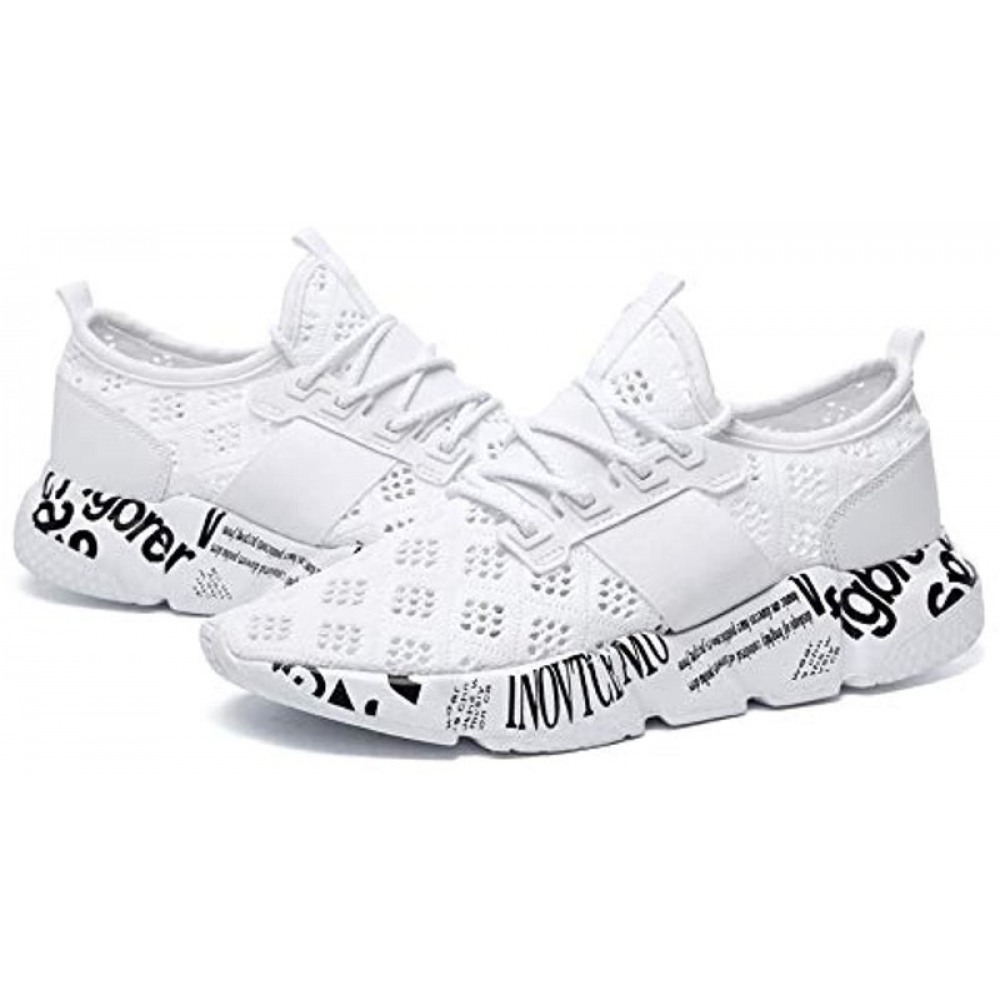 Men's Lightweight Breathable Mesh Street Sport Walking Shoes Casual Sneakers for Sports Gym Walking White