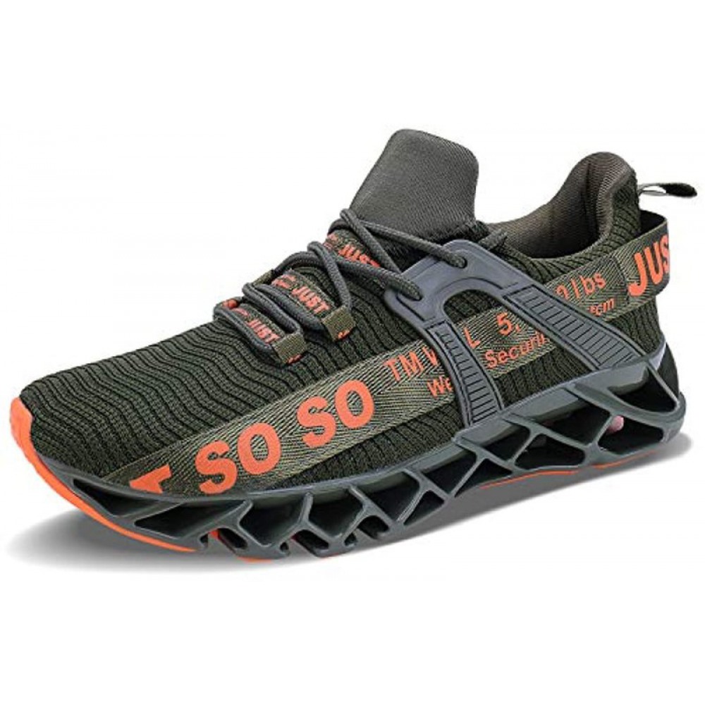 Mens Runing Shoes Walking Non Slip Blade Type Sneakers Army Green