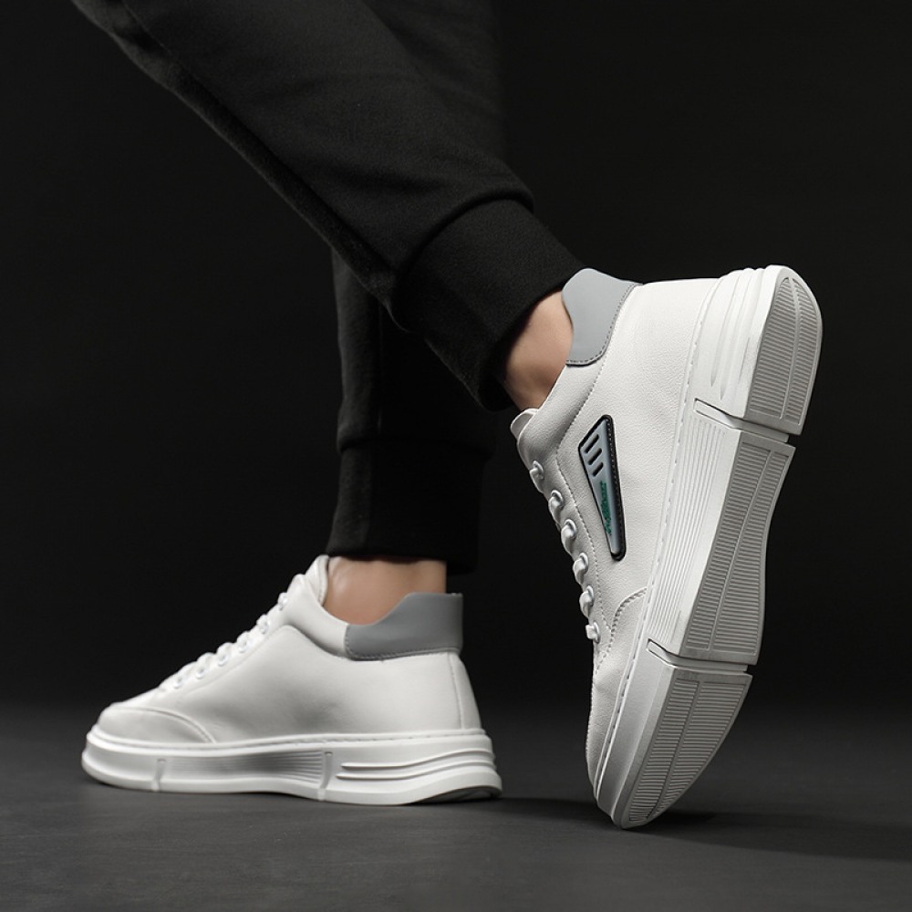 Summer Men's Board Shoes Soft Leather White Shoes Mens Leather Trendy Shoes Shell-Toe Daily Casual Shoes