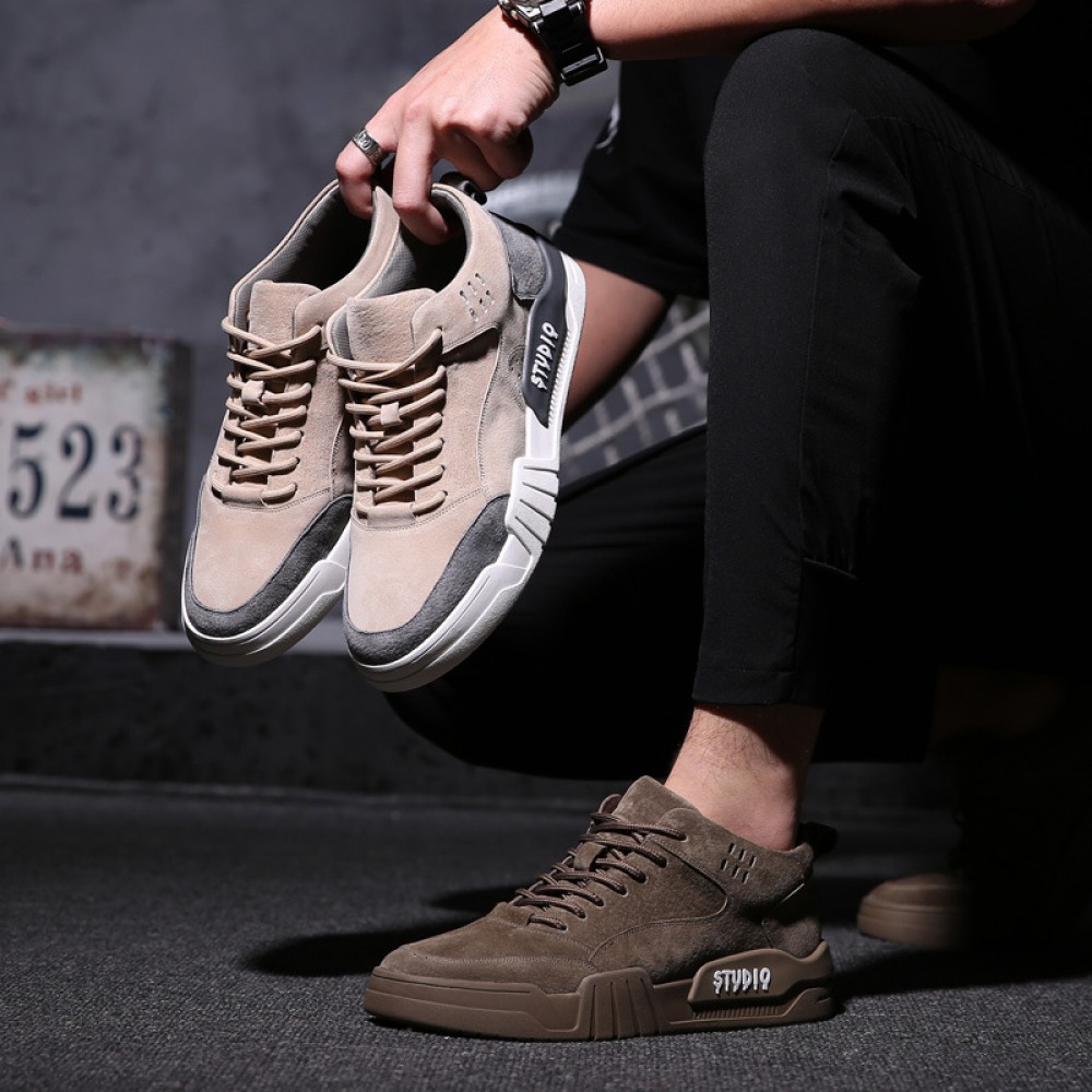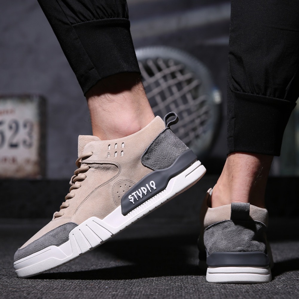 Men's Spring Shoes New High-Top Fashion Leather Casual Board Shoes for Men