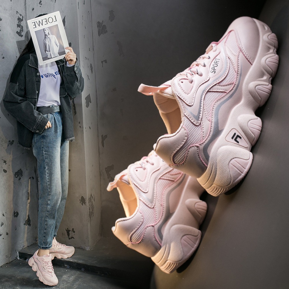 Women's Autumn Mesh Trendy Shoes Reflective Thick-Soled Increased Casual Sports Women's Shoes